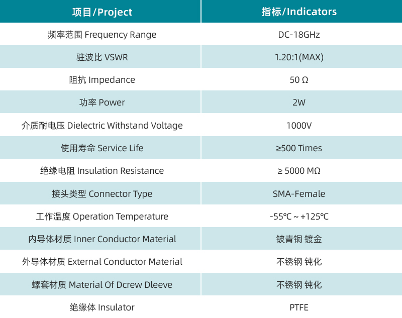 體積小、低駐波、低插損、耐腐蝕、壽命長